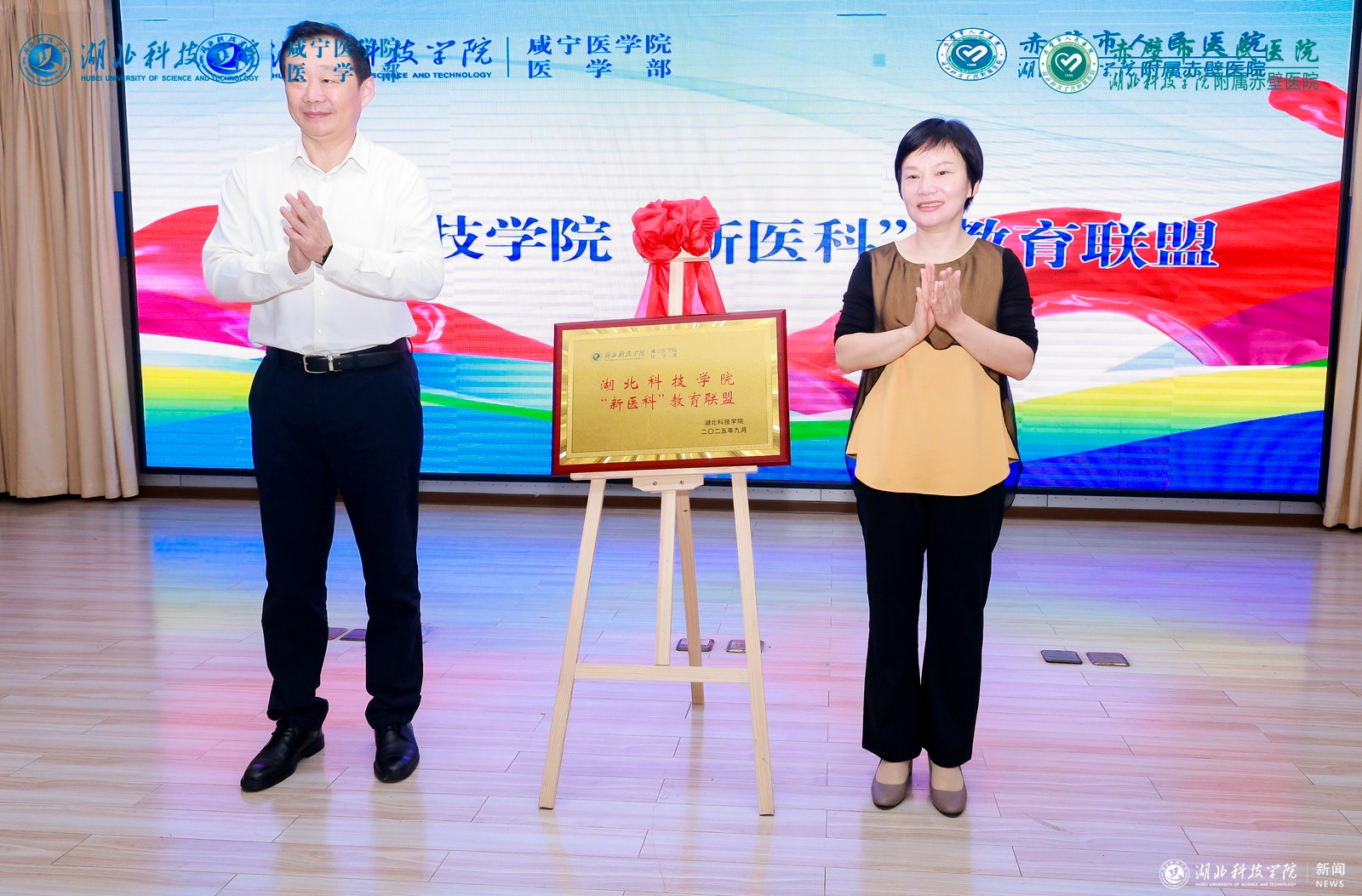 开幕式上,闫英姿与董方平共同为“湖北科技学院‘新医科’教育联盟”揭牌。